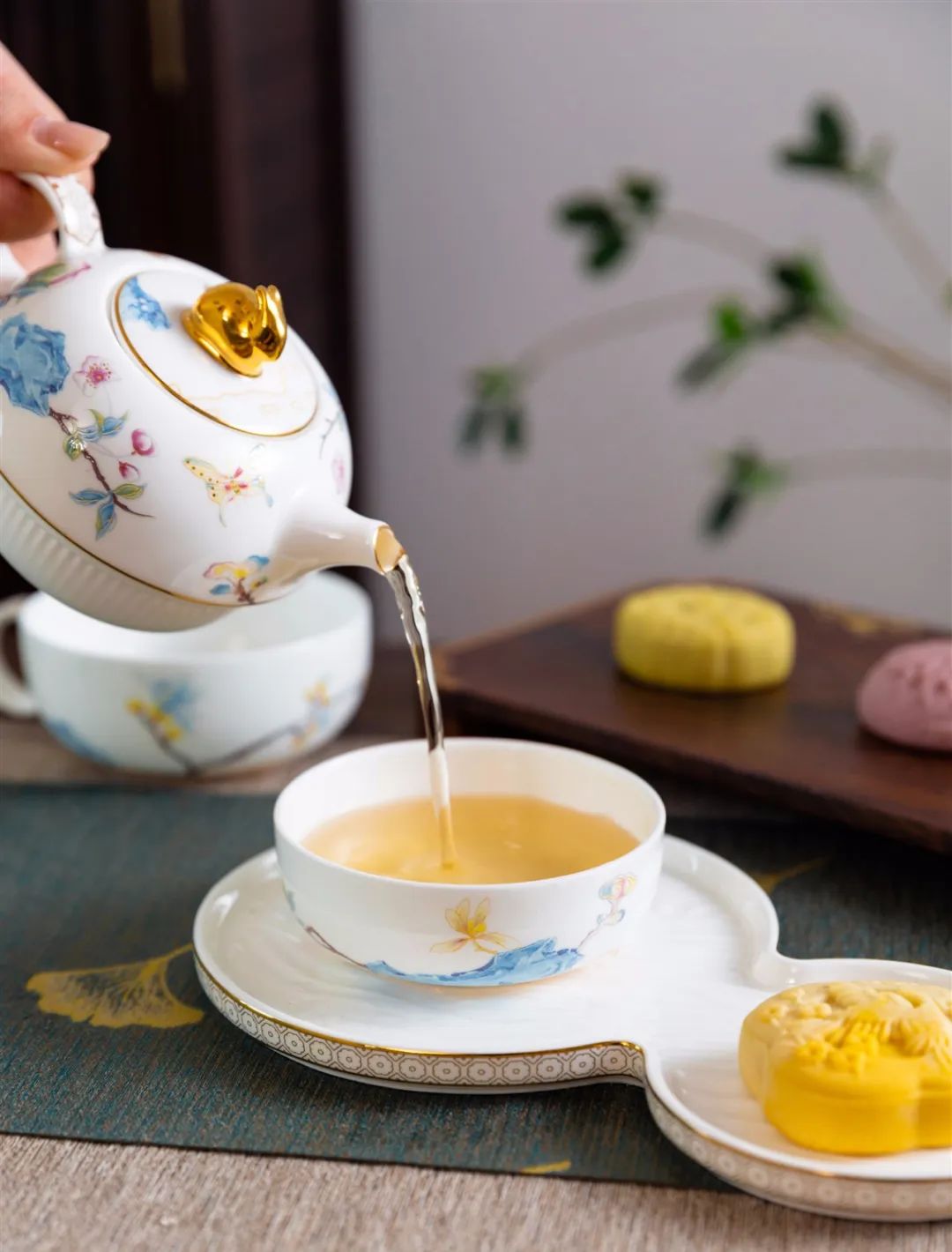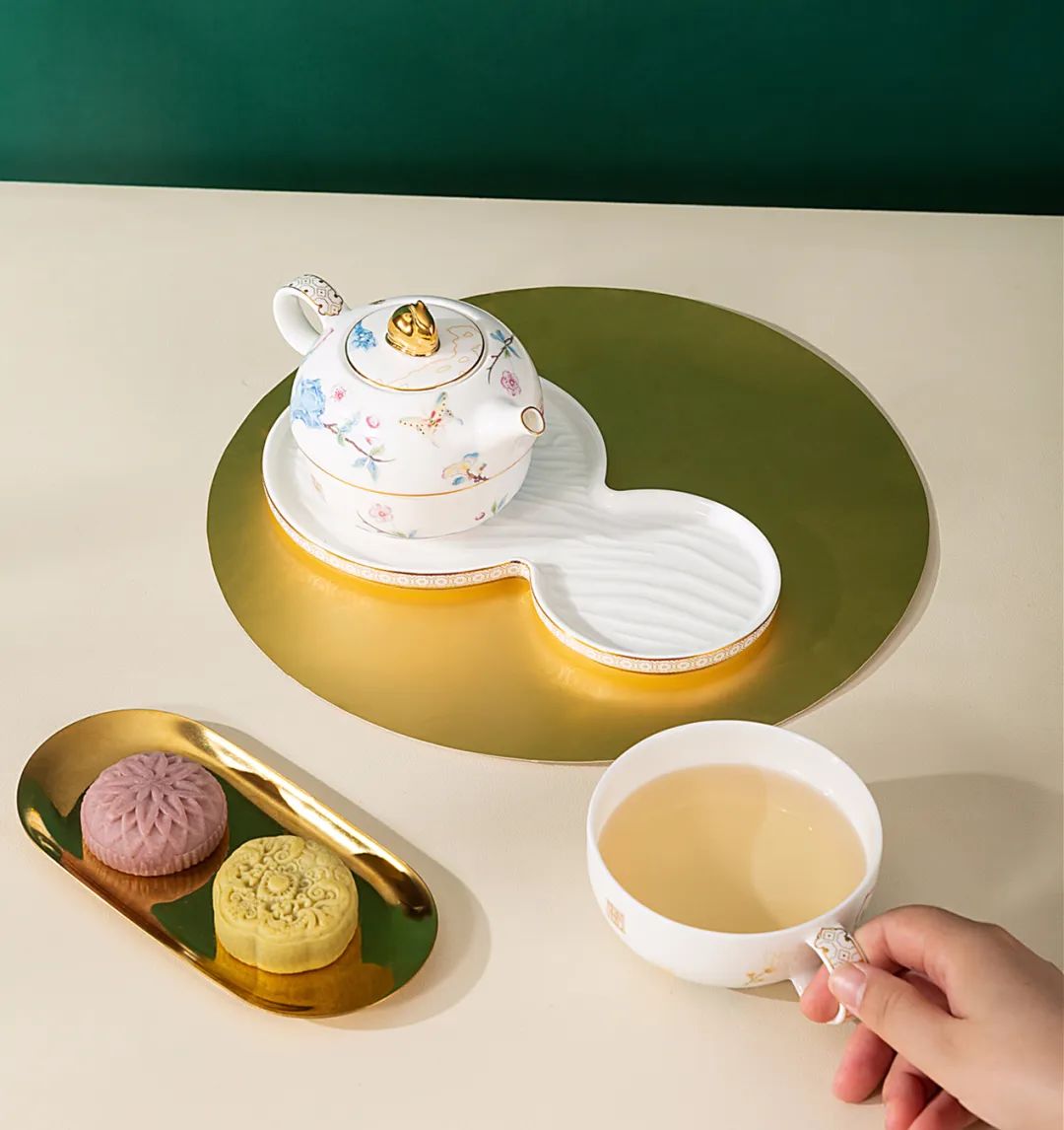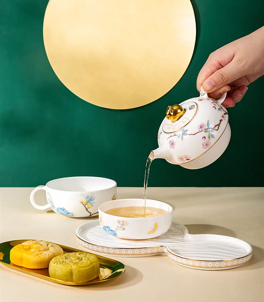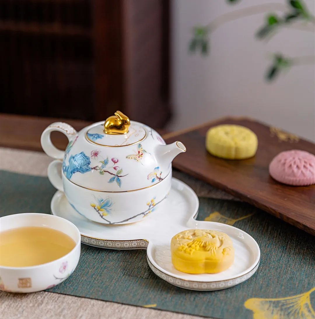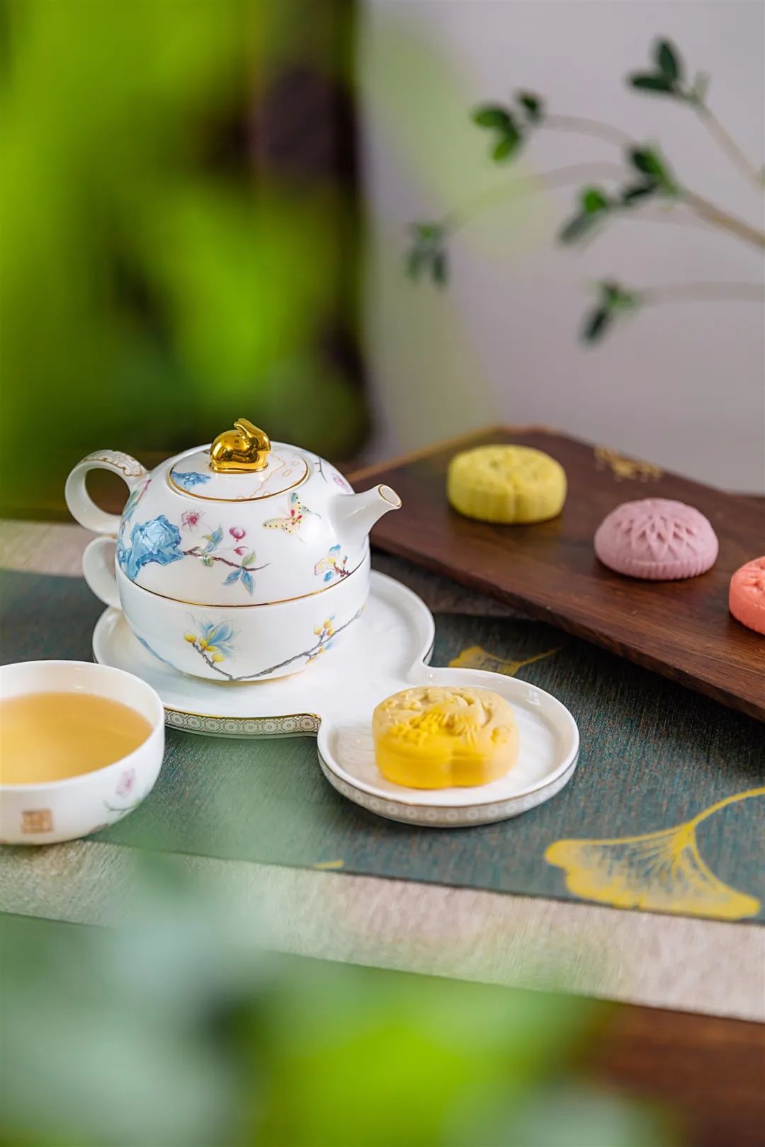 整套茶具不仅自用体面,用来赠予知己、好友,更是道尽无限珍重。一壶一杯、一盘一碟,承载着我们古往今来对中秋佳节的美好向往。