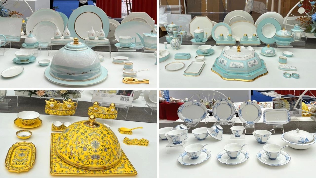 高淳陶瓷在现场集中展陈了多品类的日用家居陶瓷、高端宴会餐瓷产品。传统技艺与现代科技结合,金光与瓷光交相辉映,让观众不禁驻足欣赏。