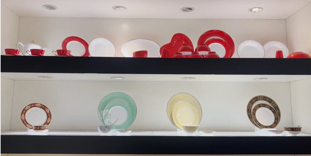 APEC会议国宴元首席上的陶瓷餐具共68件套,选用的是“帝王黄”的珐琅彩瓷,营造出一种中华的、典雅的又有仪式感的气氛。