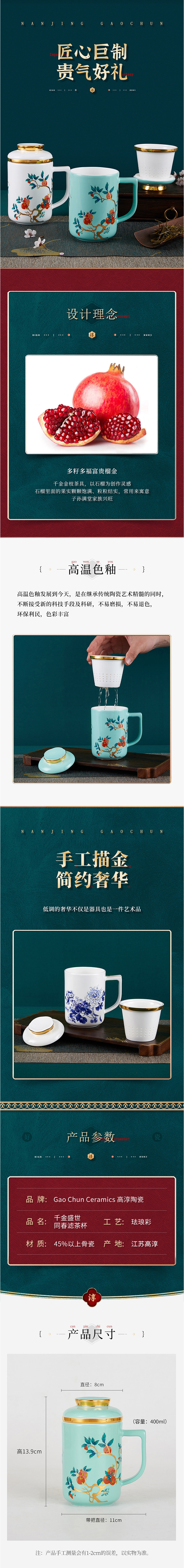 / 产品中心 / 尊上 / 千金红石榴系列 / 中国风三件套滤茶杯