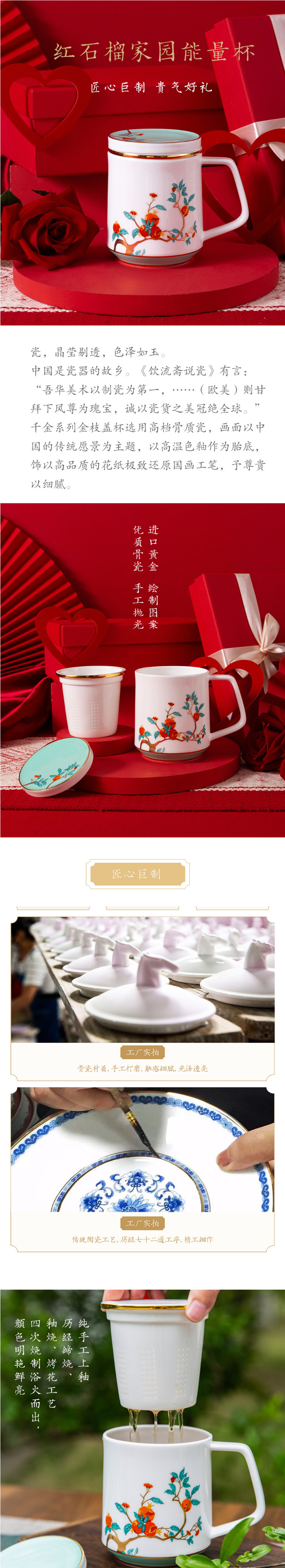 / 产品中心 / 尊上 / 千金红石榴系列 / 红石榴家园中式宫廷风骨瓷带盖滤茶杯
