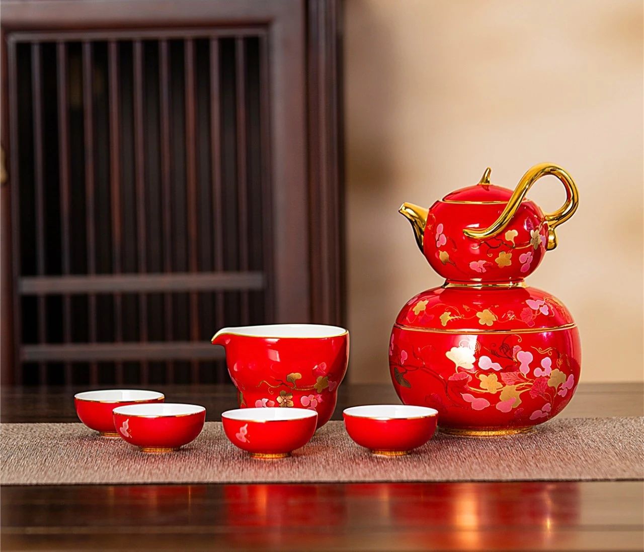洪福茶具以葫芦为设计原型,上中下三个部分组合成一个完整的葫芦形态,葫芦谐音“福禄”、“护禄”口小肚大,是福气延绵、财库饱满的象征。在茶具不使用时,将其套叠摆放,既便于收纳,又具有装饰功能,适用于不同的家居场景。