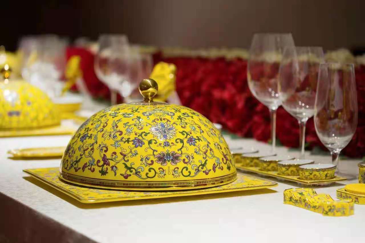 2014年11月10日晚,在北京APEC峰会晚宴上,由江苏高淳陶瓷股份有限公司(以下简称“高淳陶瓷)独家承制的黄、白两款“盛世如意”珐琅彩餐瓷流光溢彩、惊艳四座。此后,高淳陶瓷一举成名。每逢重大国宴,总会看见高淳陶瓷的身影:两届北京“一带一路”国际合作高峰论坛、乌镇世界互联网大会、两届中国进口博览会、中非合作论坛以及北京钓鱼台国宾馆……高淳陶瓷的每次亮相总能让人为之惊叹。